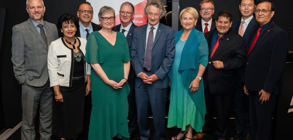 L-R: Dr. Samer Shaheen inducting Senator Barbara Pocock to the Global Management Accounting Hall of Fame. Prof Janek Ratnatunga read out the citation